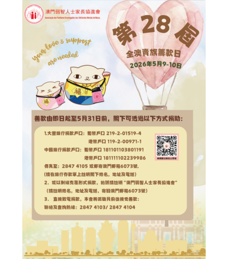 關注“澳門弱智人士家長協進會”微信官方公眾號