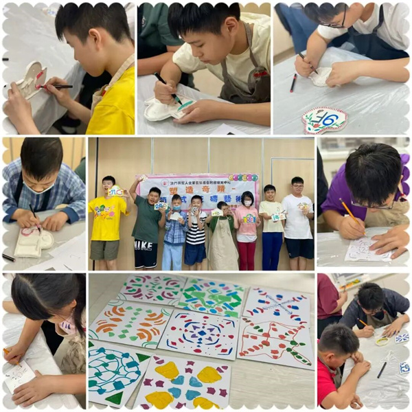 為了培養特殊學習需要兒童對藝術的興趣,促進他們的身心健康並增強自我形象,本會轄下曙光中心於7月和8月舉辦了2025年度展能藝術的「葡式花磚藝術」興趣班。本次活動得到了社工局的資助。在課程中,導師循序漸進地指導學員使用鉛筆和馬克筆,在瓷磚和膠片上繪製精美的幾何圖案及不規則圖案。隨著不斷的嘗試和練習,參與的學員漸漸創造出屬於自己的圖案風格,有的作品色彩斑斕,有的則線條分明。每位學員都展現出獨特的系列作品,能力較強的學員甚至在一堂課中設計出兩款作品,充分投入其中。在創作過程中,他們感受到滿足感和幸福感,也深入體驗了葡萄牙藝術的文化。