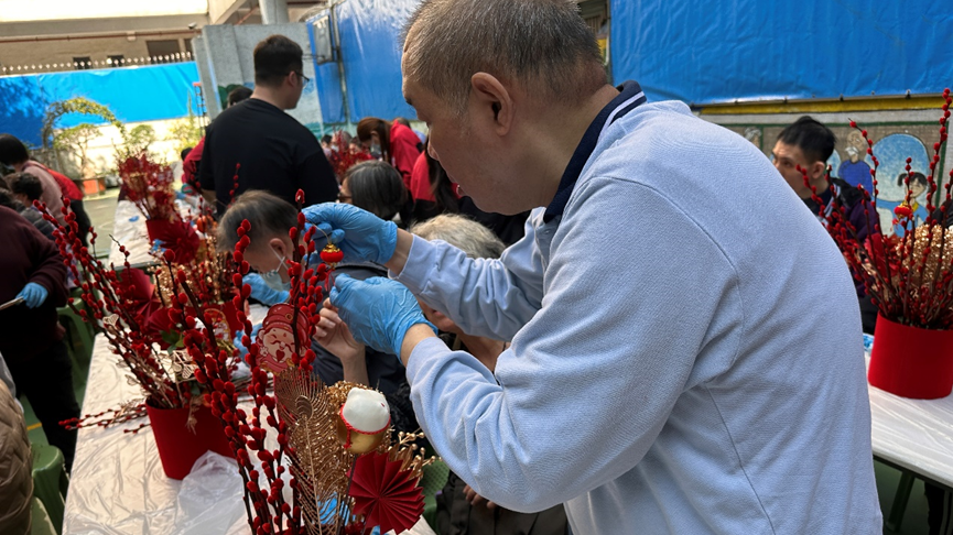活動開始,工作員先向學員和家長講解製作步驟及注意事項,隨即派發製作材料,學員和家長便開始製作銀柳福桶。活動過程中,學員與家長緊密合作,共同點綴著寓意吉祥的福桶作品。漸漸地,一盆盆喜氣洋洋、充滿新年氣氛的銀柳福桶陸續完成。每盆銀柳福桶的風格獨一無二,象徵著學員和家長的心意,對新年的美好期許。