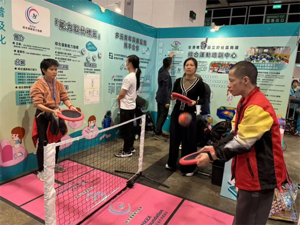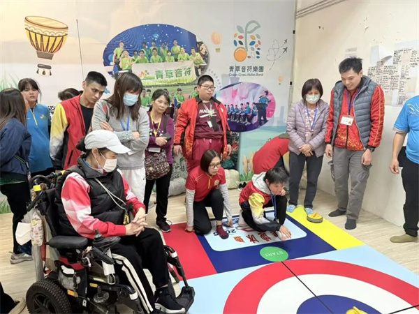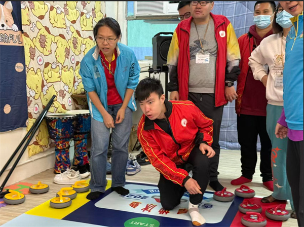 在中國香港輪椅冰壺協會教練指導下,學員們體驗地壺運動