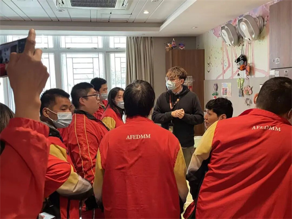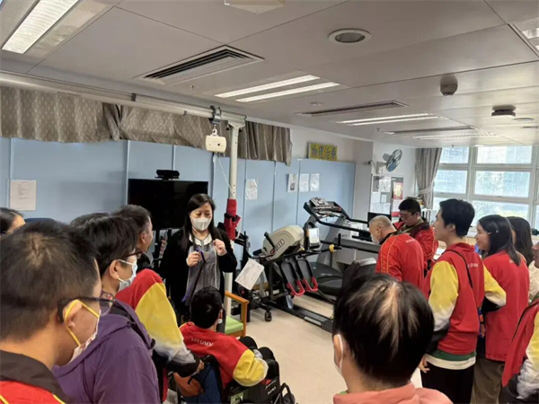 首先前住悅明居參觀,了解以「家居化」模式為中度或以上智障人士提供住宿及生活支援,並就生活自理流程訓練及社區融入等進行交流互動。尤其是環境的設計和實用性為學員取得更多的活動空間和便利,供學員使用。其後,到康恩園、述恩閣及其物理治療室和職業治療室,了解跨專業團隊在院舍內推行復康訓練的流程,維持院友的活動能力與日常生活功能。還到中國香港輪椅冰壺協會交流切磋,在教練指導下體驗地壺運動,感受傷健共融及團隊合作精神。