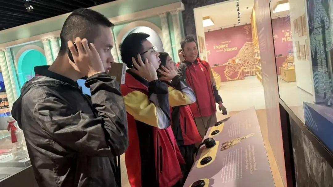 活動開始時,大家共同觀看澳門發展主題2d短片介紹,隨後進入展館,近距離欣賞八大地標建築還原場景模型。從舊時建築風貌到珍貴歷史展品,學員們在趣味互動體驗中,即場感受澳門從傳統習俗到城市風貌的滄桑巨變,領略中西文化交融的獨特魅力。